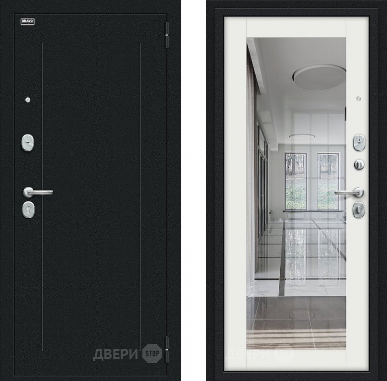 Входная металлическая Дверь Bravo Флэш Букле черное/Bianco Veralinga в Пушкино 860х2050 мм