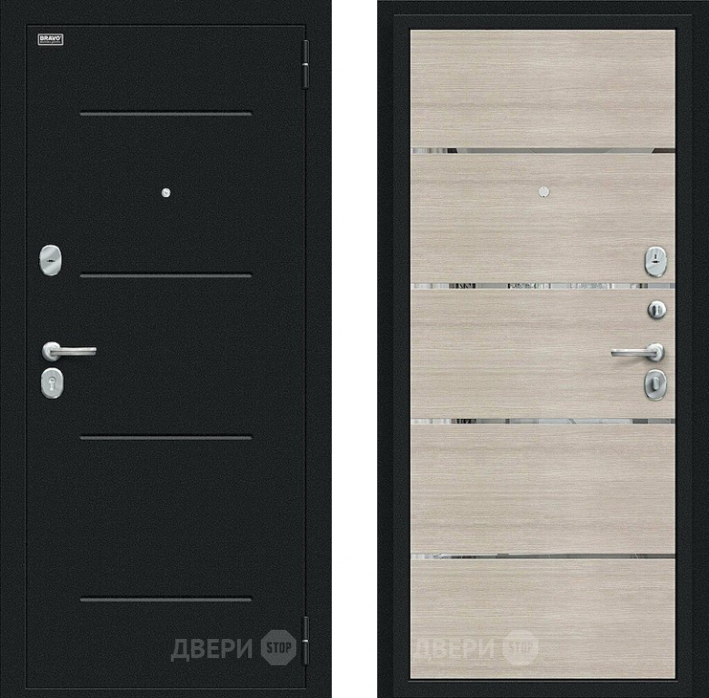 Входная металлическая Дверь Bravo Лайн Букле черное/Cappuccino Veralinga в Пушкино 860х2050 мм