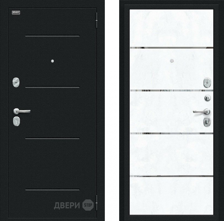 Дверь Bravo Лайн Букле черное/Snow Art в Пушкино 960х2050 мм