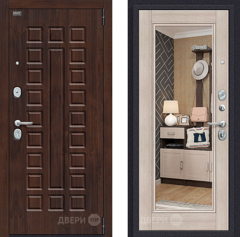 Входная металлическая Дверь Bravo Оптим Урбан с зеркалом Cappuccino Veralinga в Пушкино 860х2050 мм