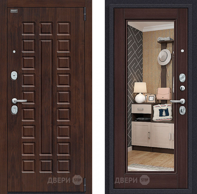 Входная металлическая Дверь Bravo Оптим Урбан с зеркалом Wenge Veralinga в Пушкино 860х2050 мм