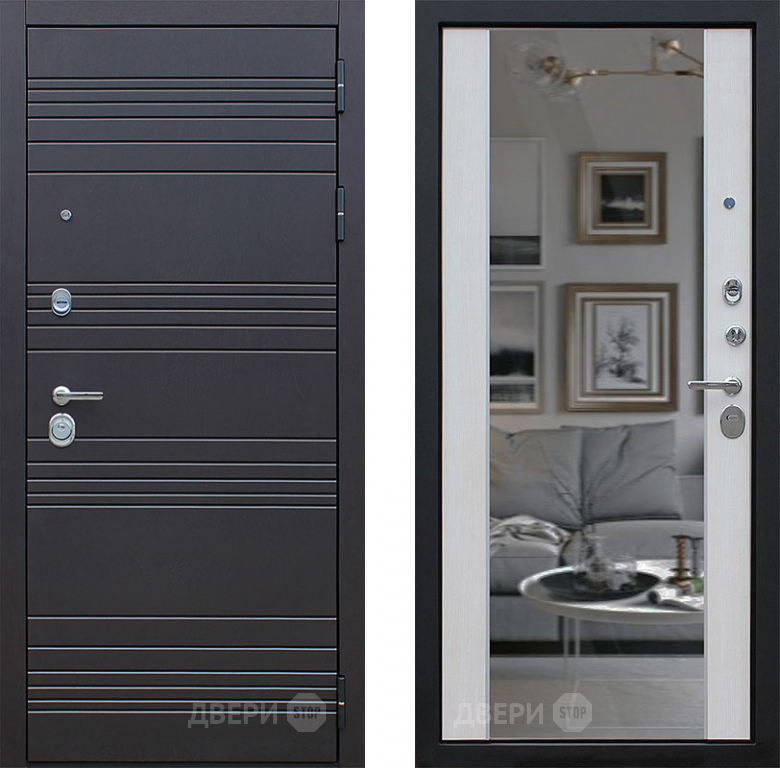Входная металлическая Дверь АСД Дуэт с зеркалом Лиственница белая в Пушкино 860х2050 мм
