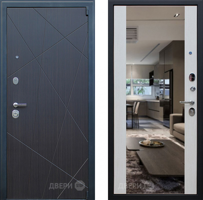 Входная металлическая Дверь АСД Вектор с зеркалом Лиственница белая в Пушкино 860х2050 мм
