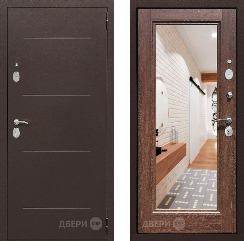 Входная металлическая Дверь Престиж 100 с зеркалом Медь/Дуб филадельфия коньяк в Пушкино 860х2050 мм