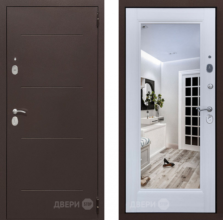 Входная металлическая Дверь Престиж 100 с зеркалом Медь/Лиственница белая в Пушкино 860х2050 мм