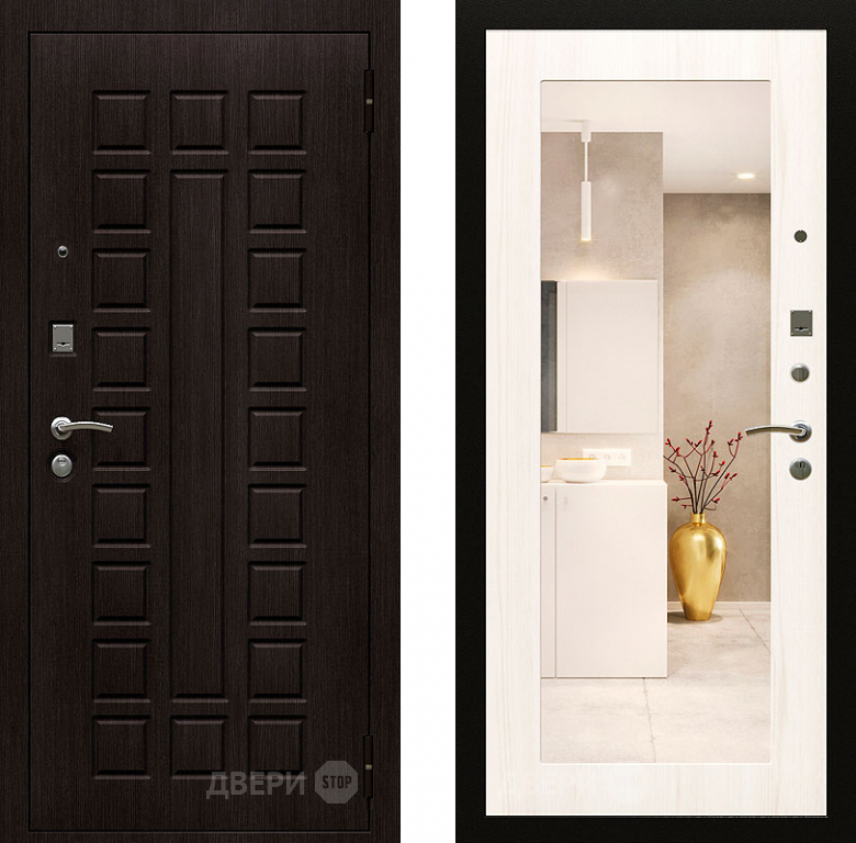 Входная металлическая Дверь Райтвер Сенат-лайф с зеркалом Беленый Дуб в Пушкино 860х2050 мм