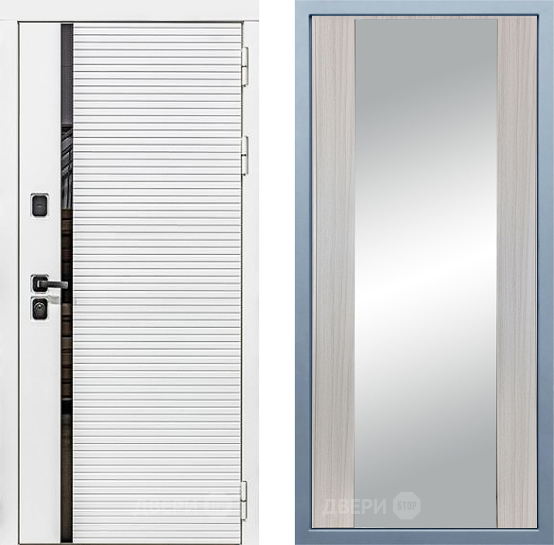 Входная Дверь Дива МХ-45 Белая STR Д-15 Зеркало Сандал белый 960x2050 мм