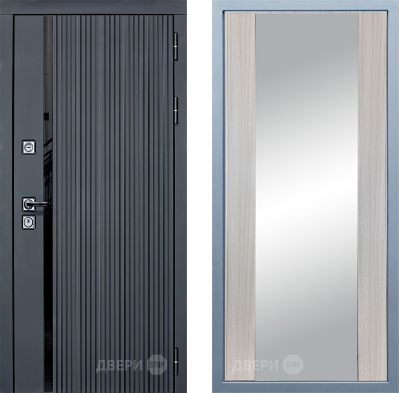 Входная Дверь Дива МХ-46 STR Д-15 Зеркало Сандал белый 960x2050 мм