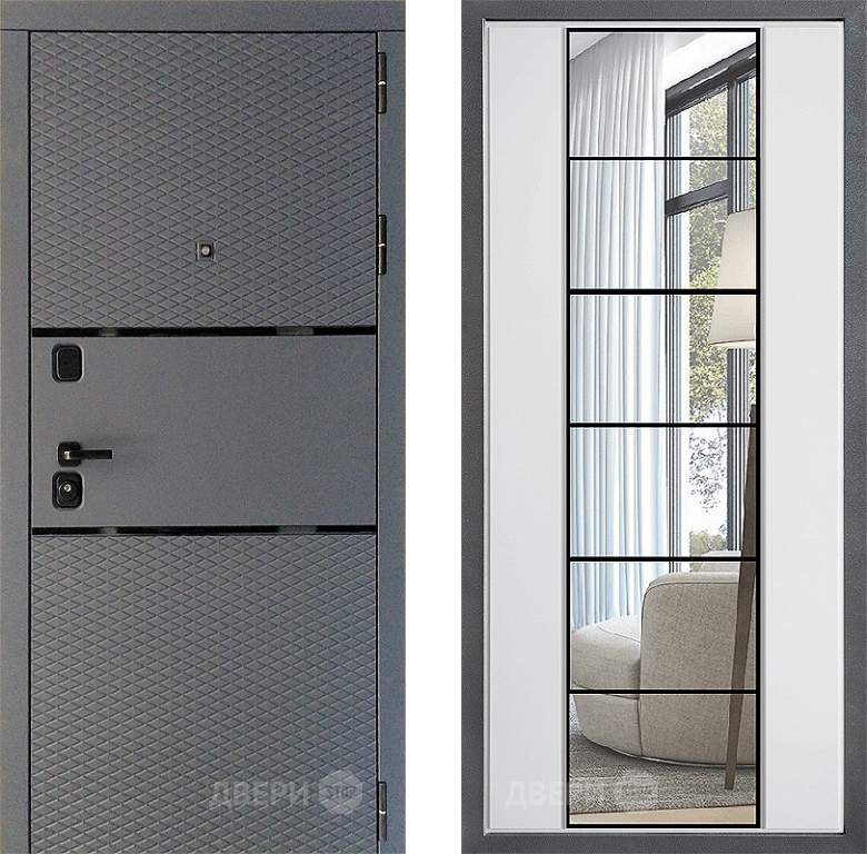 Входная Дверь Дверной континент Диамант Дизайн ФЛЗ-2 Зеркало Белый софт 860x2050 мм