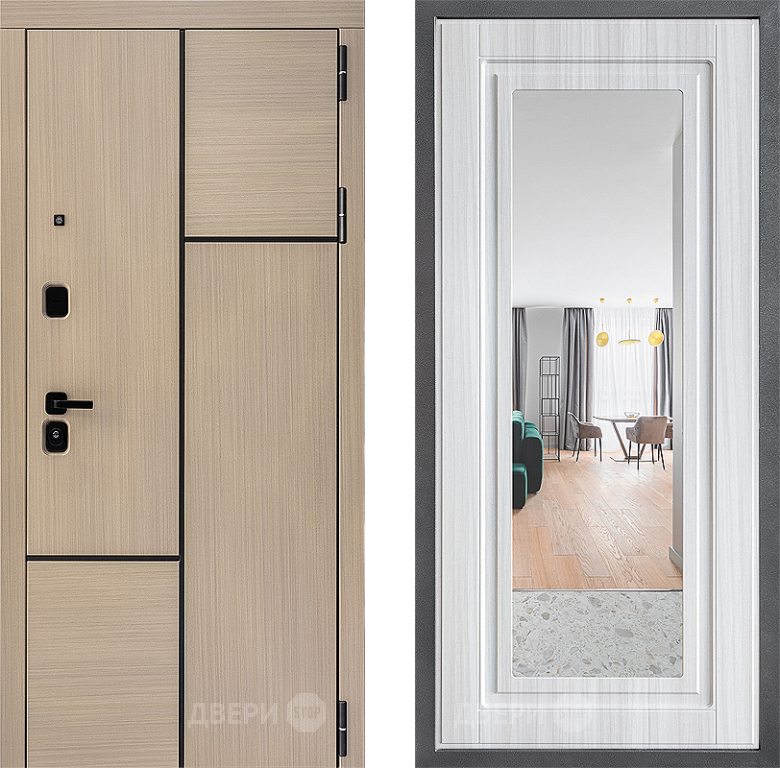 Входная Дверь Дверной континент ДК-14 ФЛЗ Зеркало Сандал белый 860x2050 мм