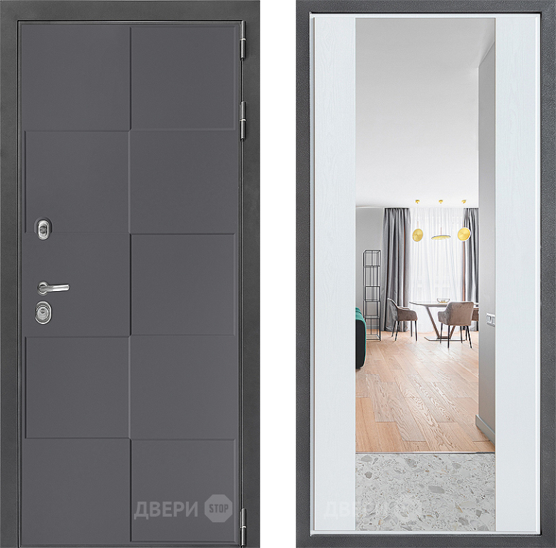 Входная Дверь Дверной континент ДК-3/606 ФЛЗ-1 Зеркало Белое дерево 860x2050 мм