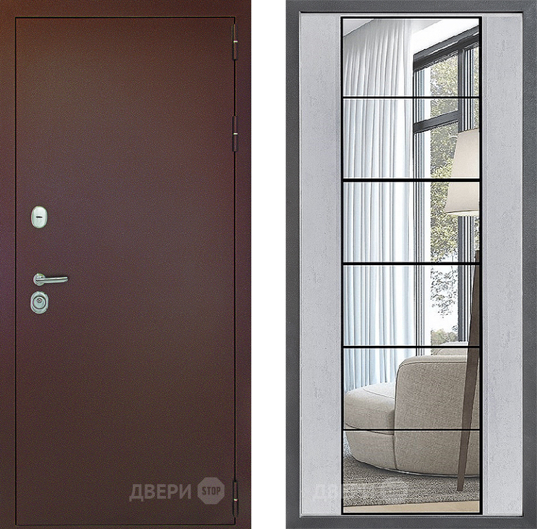 Входная Дверь Дверной континент Рубикон Медь Дизайн ФЛЗ-2 Зеркало Бетон светлый 860x2050 мм