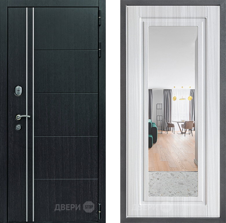 Входная Дверь Дверной континент Теплолюкс Дизайн ФЛЗ Зеркало Сандал белый 860x2050 мм