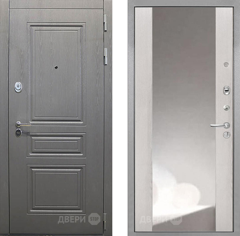 Входная Дверь Интекрон (INTECRON) Брайтон Графит ФЛЗ-516 Зеркало Сосна белая 960x2050 мм
