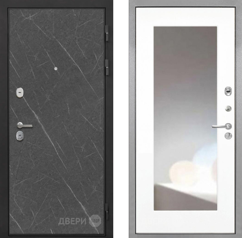 Входная Дверь Интекрон (INTECRON) Гектор Гранит Лава Оникс ФЛЗ-120-М Зеркало Белый матовый 960x2050 мм
