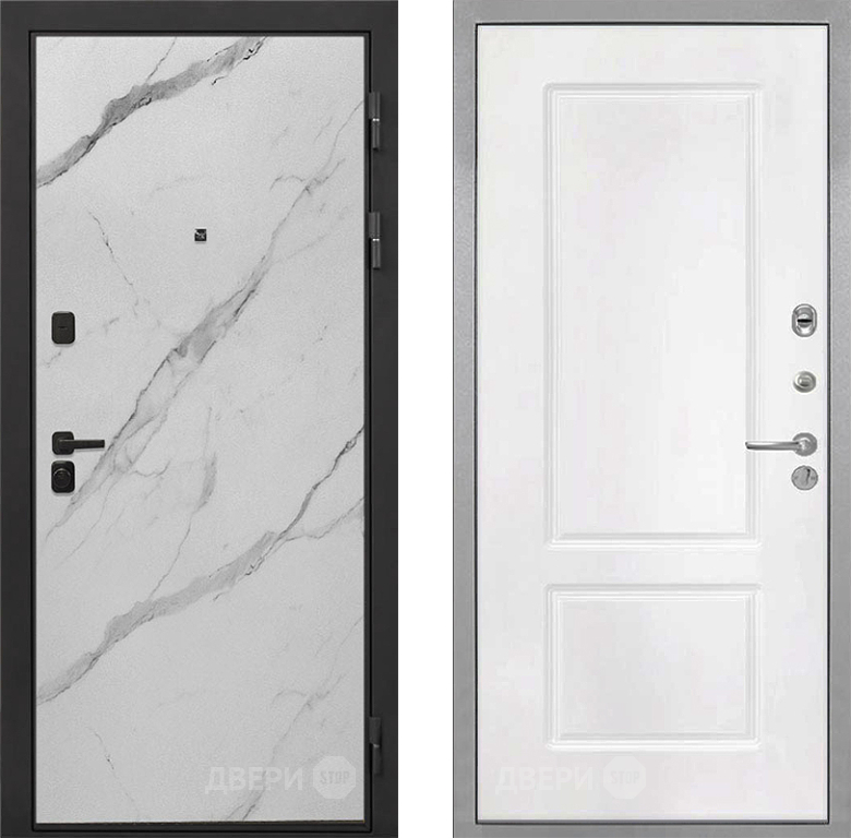 Входная Дверь Интекрон (INTECRON) Профит Black Мрамор Арктик КВ-2 Белый матовый 860x2050 мм