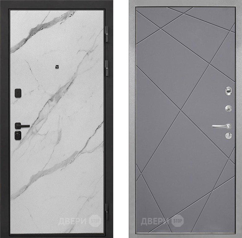 Входная Дверь Интекрон (INTECRON) Профит Black Мрамор Арктик Лучи-М Графит софт 860x2050 мм