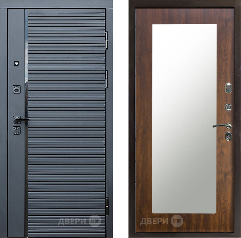 Входная Дверь Престиж Черная Линия Зеркло Пастораль Дуб 860x2050 мм