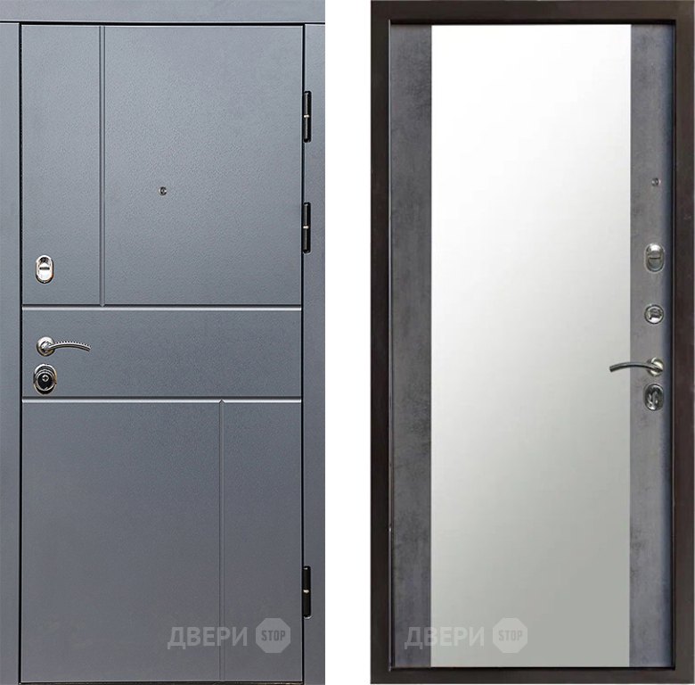 Входная Дверь Престиж Горизонт Грэй Зеркало Бетон темный 860x2050 мм