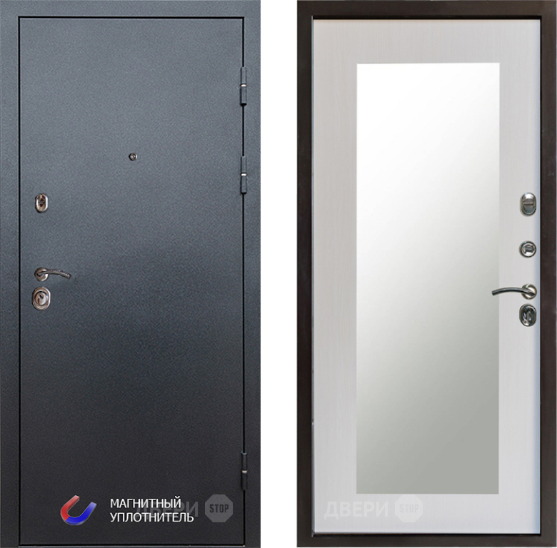 Входная Дверь Престиж Графит Зеркло Пастораль Лиственница белая 860x2050 мм