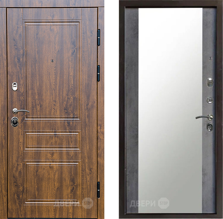 Входная Дверь Престиж Классика Дуб Зеркало Бетон темный 860x2050 мм