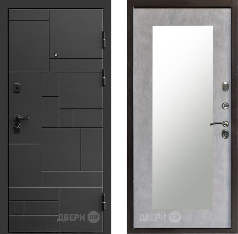 Входная Дверь Престиж Kvadro Зеркло Пастораль Бетон светлый 860x2050 мм