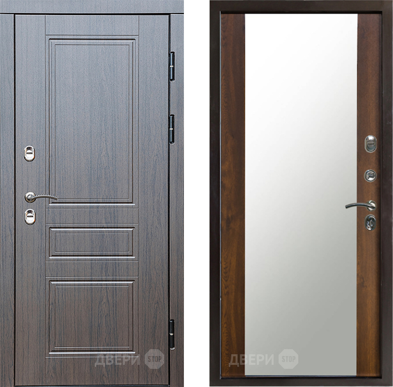 Входная Дверь Престиж TERMO с терморазрывом Классика Зеркало Дуб 860x2050 мм