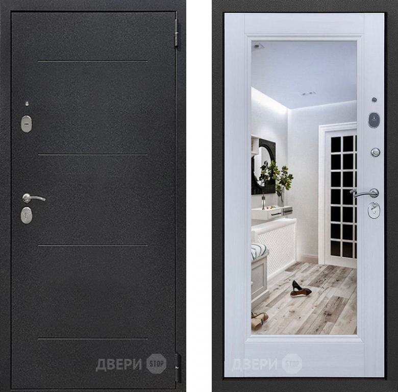 Входная металлическая Дверь Престиж 100 с зеркалом Шелк/Лиственница белая в Пушкино 860х2050 мм