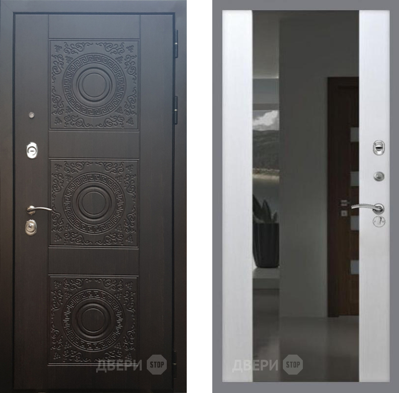 Входная Дверь Рекс (REX) 10 СБ-16 Зеркало Белый ясень 860x2050 мм