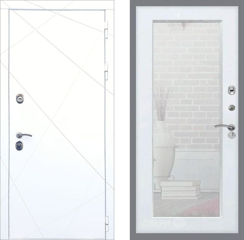 Входная Дверь Рекс (REX) 13 Силк Сноу Зеркало Пастораль Силк Сноу 960x2050 мм