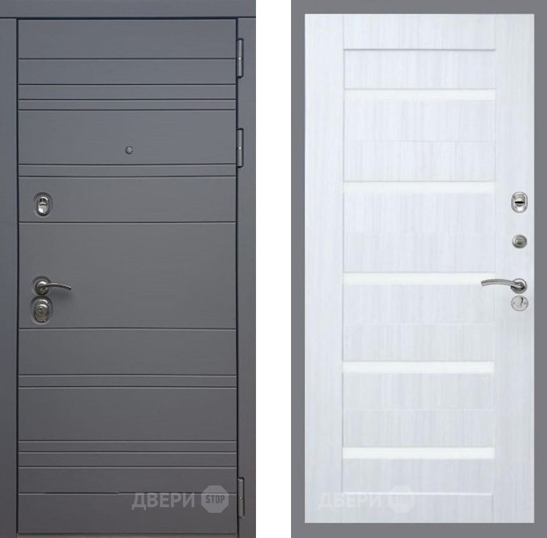 Входная Дверь Рекс (REX) 14 силк титан СБ-14 стекло белое Сандал белый 860x2050 мм
