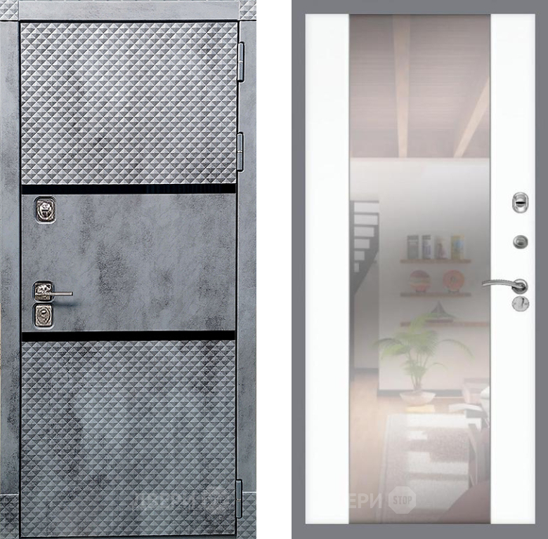 Входная Дверь Рекс (REX) 15 Бетон Темный СБ-16 Зеркало Силк Сноу 860x2050 мм