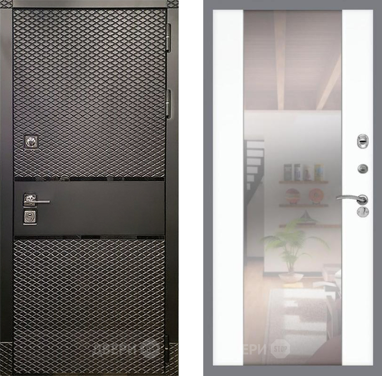 Входная Дверь Рекс (REX) 15 Черный Кварц СБ-16 Зеркало Силк Сноу 860x2050 мм