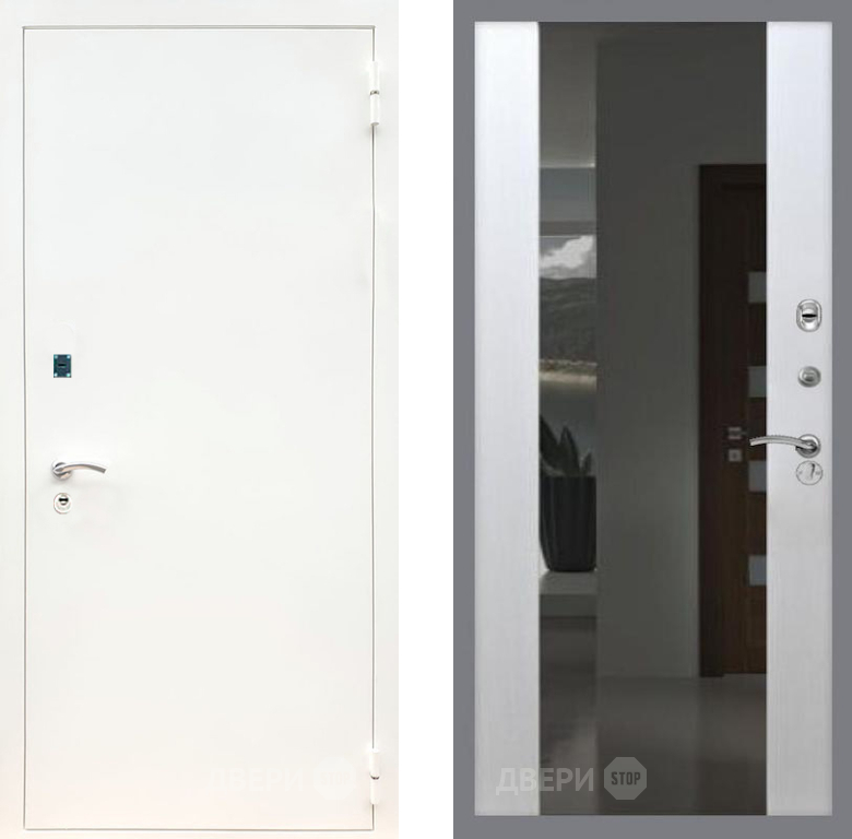 Входная Дверь Рекс (REX) 1А Белая шагрень СБ-16 Зеркало Белый ясень 860x2050 мм