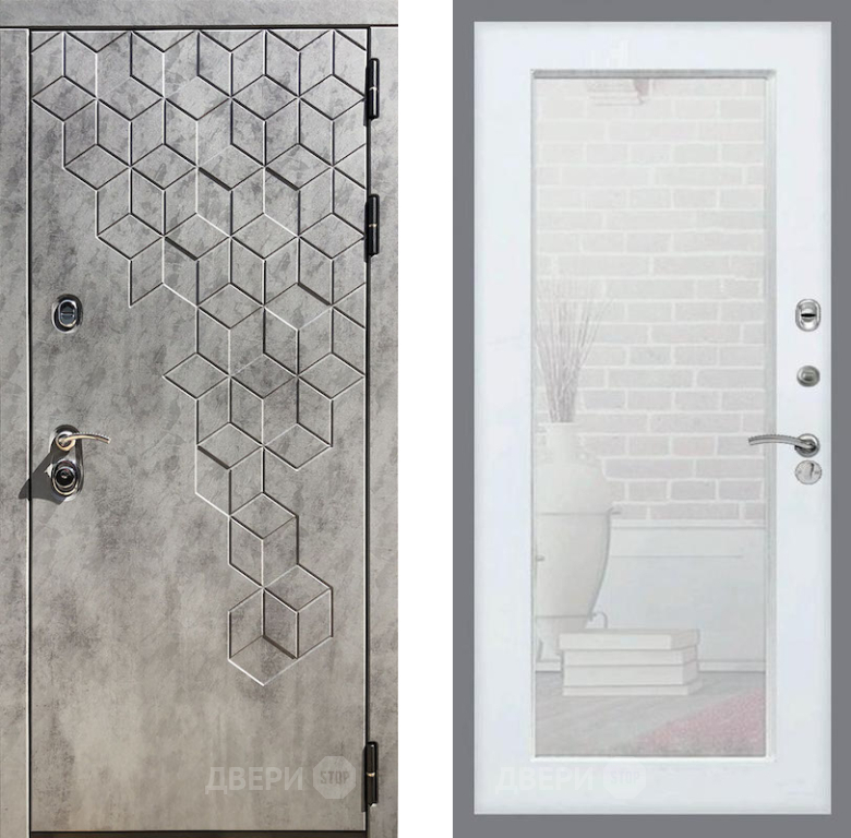 Входная Дверь Рекс (REX) 23 Зеркало Пастораль Силк Сноу 860x2050 мм