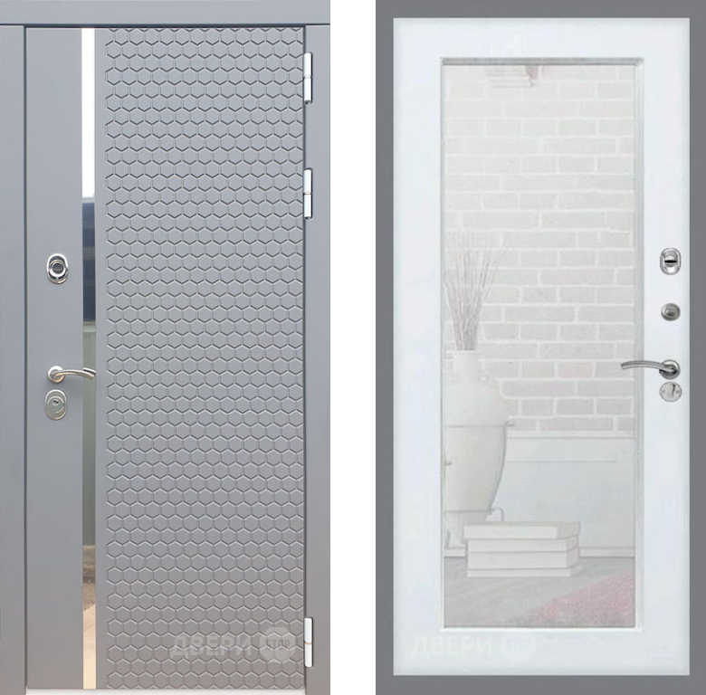 Входная Дверь Рекс (REX) 24 Зеркало Пастораль Силк Сноу 860x2050 мм
