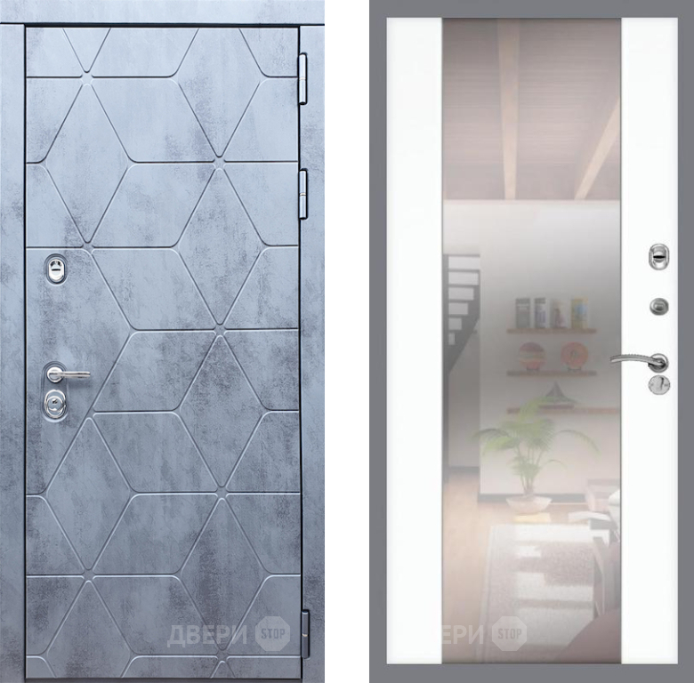 Входная Дверь Рекс (REX) 28 СБ-16 Зеркало Силк Сноу 860x2050 мм