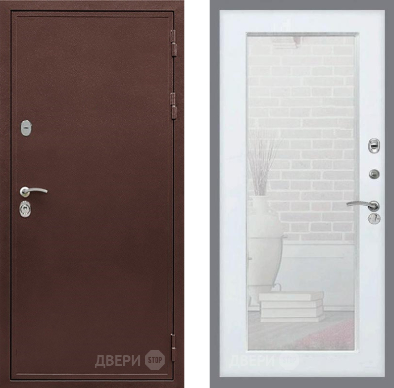 Входная Дверь Рекс (REX) 5 металл 3 мм Зеркало Пастораль Силк Сноу 860x2050 мм