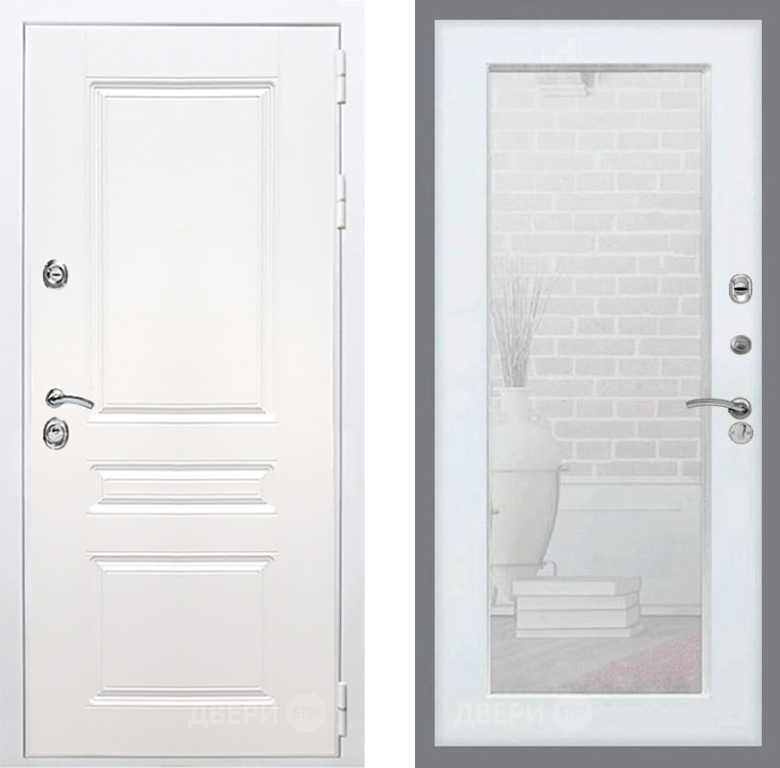 Входная Дверь Рекс (REX) Премиум-н Силк Сноу Зеркало Пастораль Силк Сноу 860x2050 мм