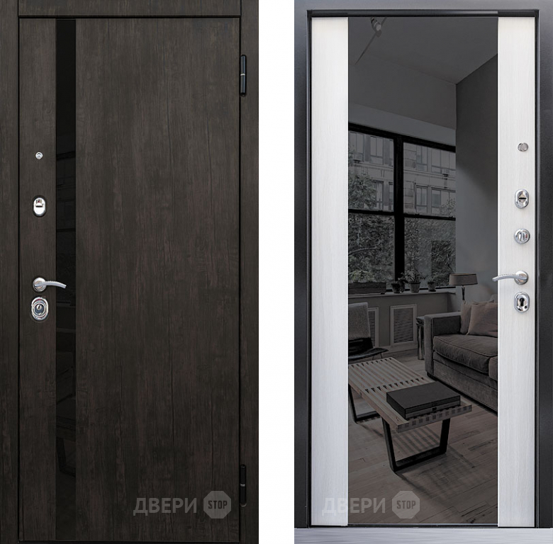 Входная металлическая Дверь Премьер зеркало тиковое дерево/лиственница белая в Пушкино 860х2050 мм