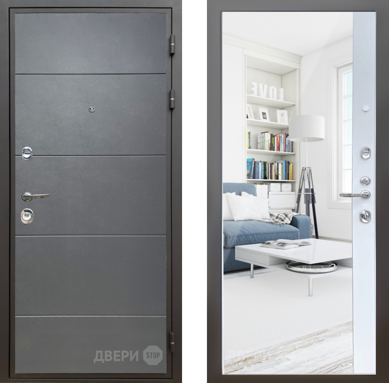 Входная Дверь Шелтер (SHELTER) Комфорт Лофт графит 14 с зеркалом Белый матовый 860x2050 мм
