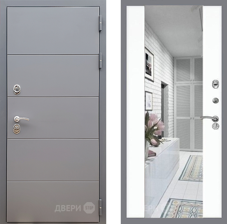 Входная Дверь Стоп АРТ ГРАФИТ Зеркало СБ-16 Силк Сноу 860x2050 мм