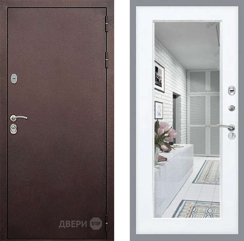 Входная Дверь Стоп КЛАССИК Медь Зеркало Силк Сноу 860x2050 мм