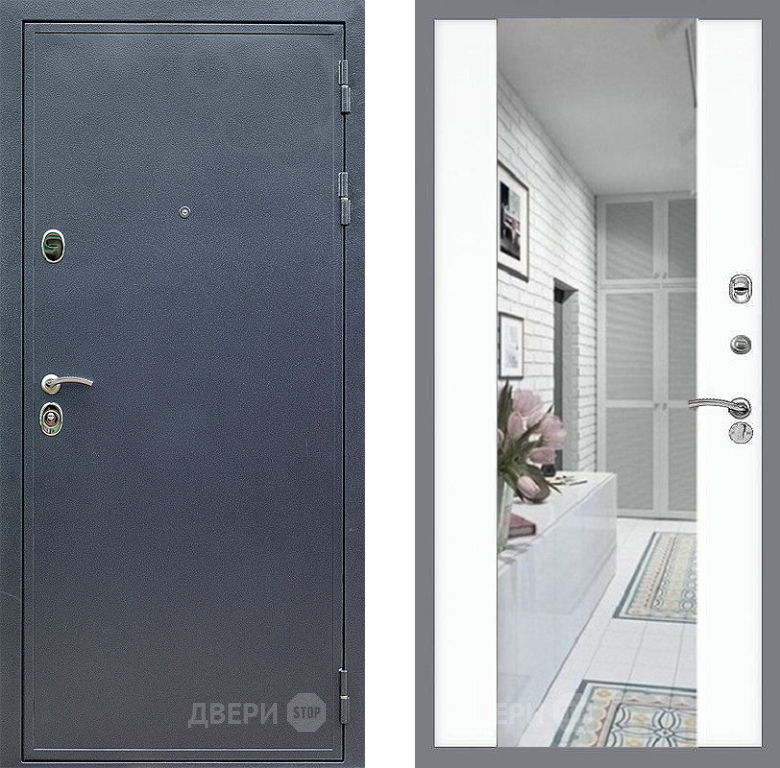 Входная Дверь Стоп СИЛЬВЕР Зеркало СБ-16 Силк Сноу 860x2050 мм