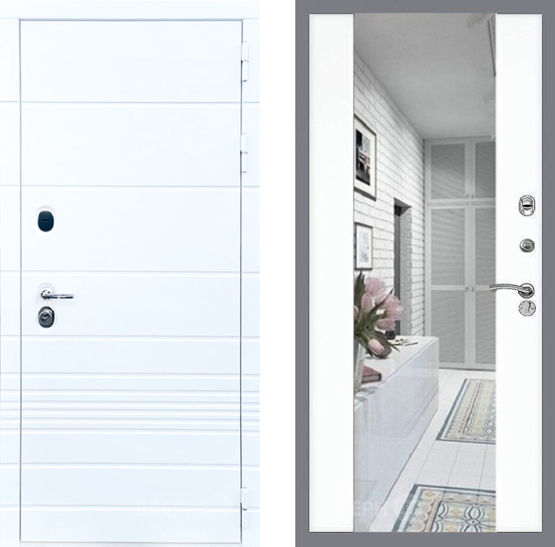 Входная Дверь Стоп ТРЕНДО Зеркало СБ-16 Силк Сноу 960x2050 мм