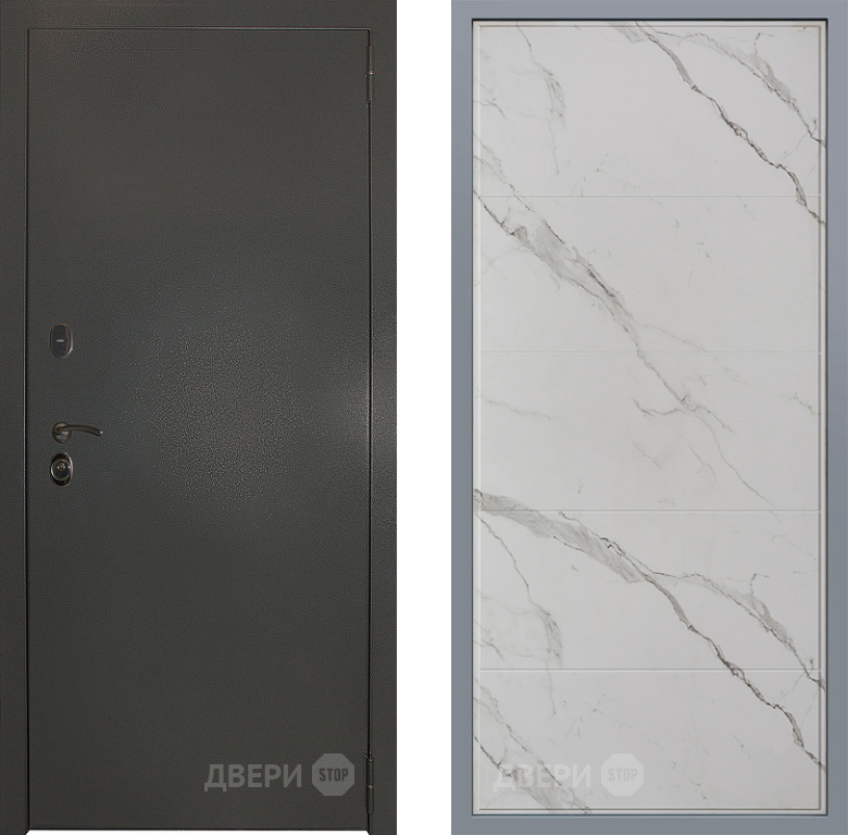 Входная Дверь Заводские двери Эталон 3к антик серебро Тривия Мрамор белый 860x2050 мм