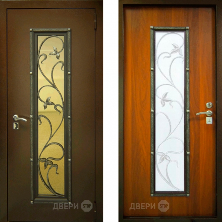 Заводские двери с ковкой и стеклом Лоза в Пушкино 860х2050 мм